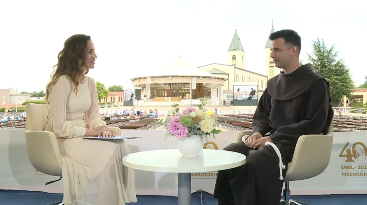 我們在此歡迎我們的嘉賓,默主哥耶堂區助理司鐸 Zvonimir Pavičić神父,讚美耶穌,讚美聖母。Zvonimir 神父我剛才說過很多朝聖者正取道來默主哥耶,有很多是步行而來。朝聖者來自30多個不同的國家。也有極多神父來此參與聖母顯現40週紀念慶典。我們都希望如此。