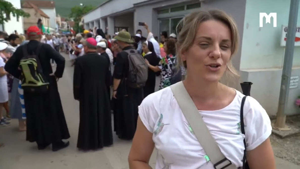 Ivana: 聖母在這裡。一切都在40年前開始。聖母帶領我們到耶穌前,往默主哥耶堂區教堂,即聖雅各伯堂。聖雅各伯同時也是朝聖者主保。很久以前,40年前,有6位神視者回應了自己的「是」。成千上萬的朝聖者見證了這一點。不幸的是,你們所有無法來到這裡的人,所有即將到來的人,你們所有都在我們的祈禱和心中。我們都為你們的意向祈禱。你們都包含在整個遊行內。這是我們唸完七篇天主經後想說的話。所以,我們走吧,親愛的信眾,無論你們在哪裡,無論你們在那裡收看,聖母會帶領我們到教堂耶穌那裡去。