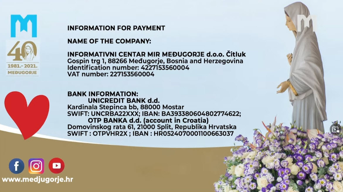 (🎤 廣東話翻譯) (🎤 普通話/國語翻譯) 巧合的是今天,即 21號之後,他們問到我七年前去默主哥耶的旅程,在那裡我聽了所有這些見證,所有的這些祈禱,所有的這些信仰,所有的這些愛。老實說,當我去默主哥耶時,我在社區聽到了這些見證和祈禱。他們讓我感覺到天主的存在,不僅像人們所說的那樣存在於言語和祈禱中,而是存在真正的現實中,在相信並以愛聚集的人們之間。...