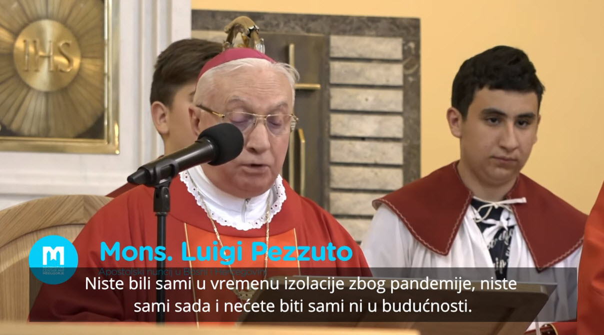總主教 Luigi Perzzuto ,波、克國教廷大使,在感恩祭結束時,本堂神父 Marinko Šakote 感謝總主教到來。