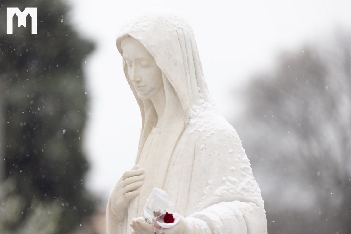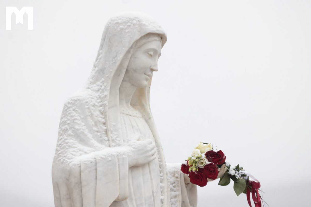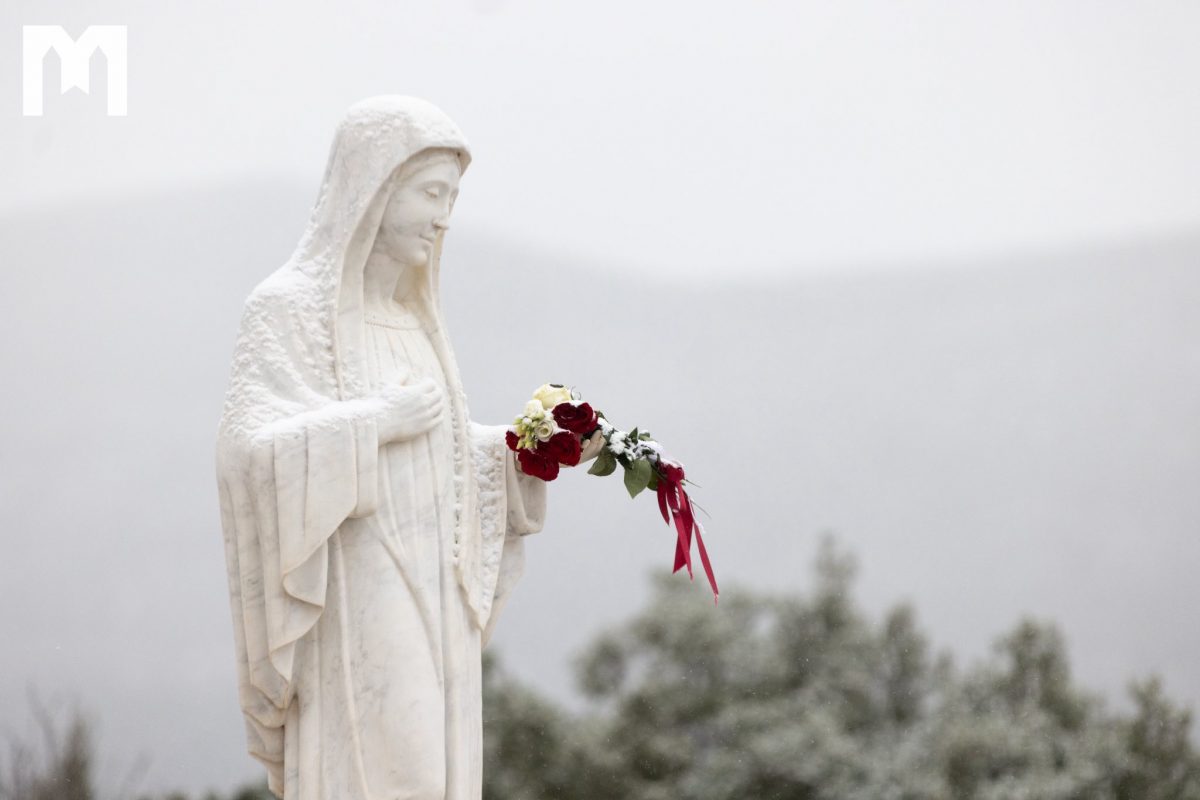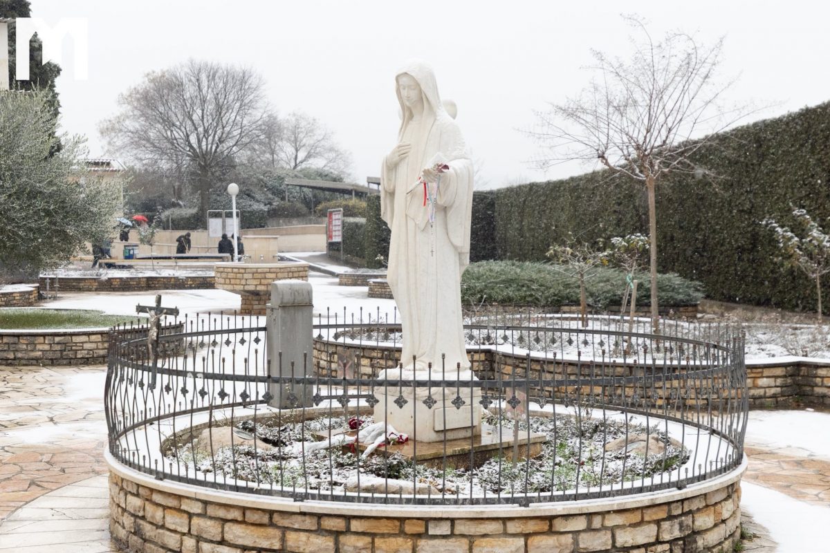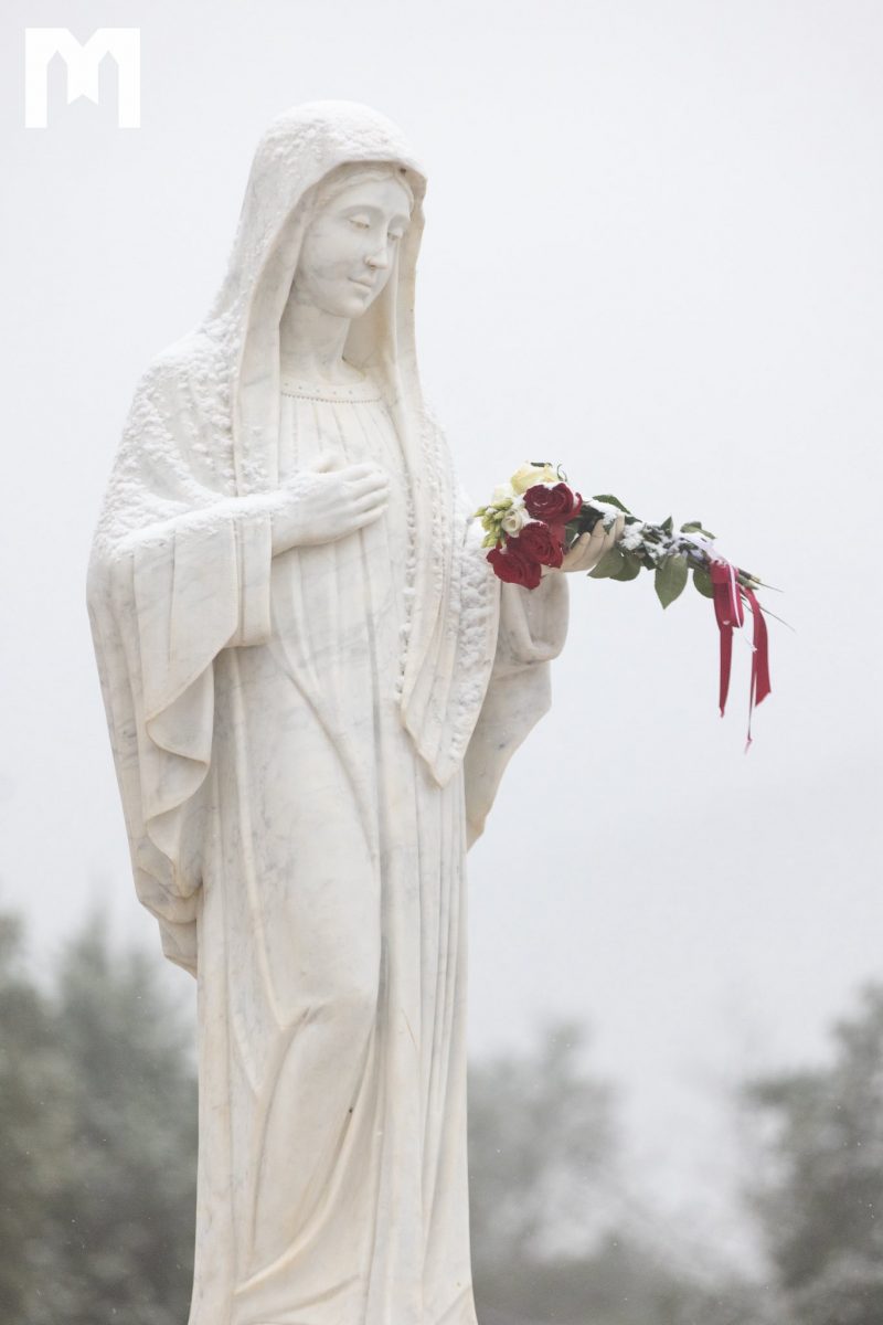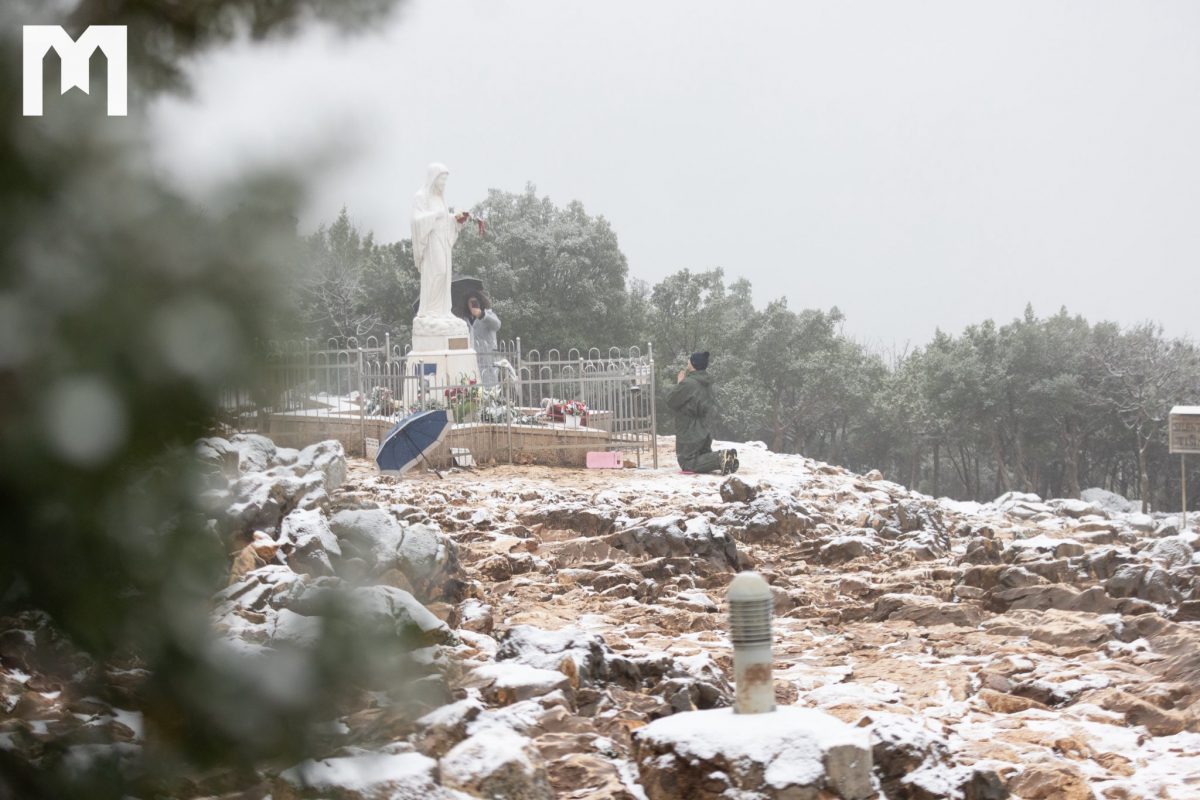 這幾天,只記錄到一小群朝聖者,他們真正有機會在安靜與平和中造訪默主哥耶的祈禱地點,以及十字架山;今天下午2時起,如同每個星期五一樣,將在那裡舉行拜苦路。在我們的相片庫中,您可以看到今晨降雪後的默主哥耶景象。儘管積雪停留的時間不長,卻成功粉刷了默主哥耶的祈禱之地。