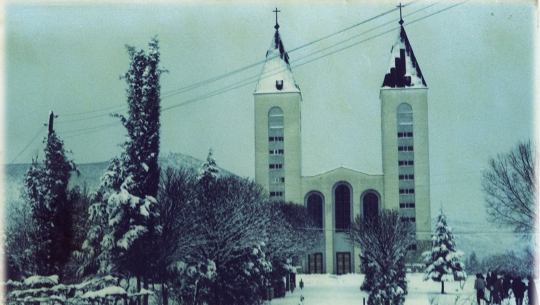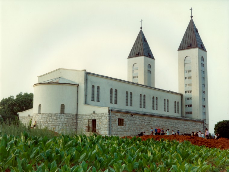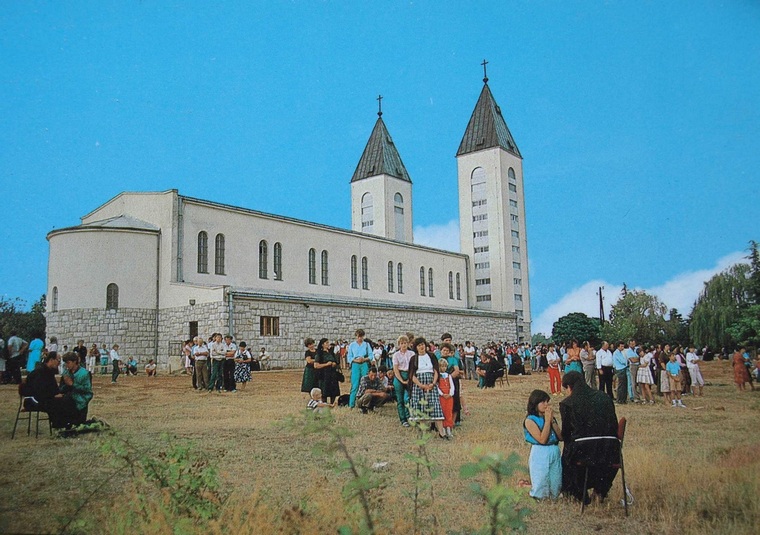 「在慶典開始前不久,矗立著雄偉十字架的十字山被燈光照亮:為此特別從村莊鋪設了約700米長的電纜。1969年1月19日,默主哥耶為新教堂舉行了隆重的祝聖慶典,《Glas Koncila》對此作出了廣泛的報導。」Robert Jolići神父在其著作《默主哥耶堂區Parish of Medjugorje》中寫道,並強調工程在祝聖之後仍繼續進行,因為教堂內部尚未裝修完成,鐘樓也未建成……