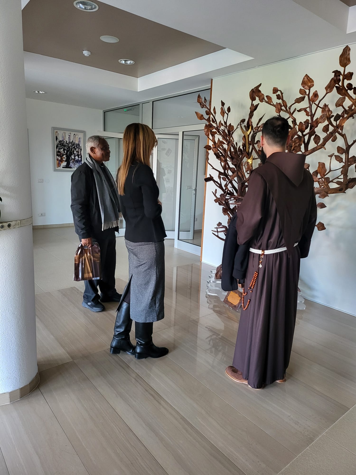 「我的行程尚未結束,我們還有幾天時間。我確實聽過許多關於默主哥耶的見證:大量前來的人群、治癒的經驗、平安的經驗、辦告解的可能,以及個人生命中重新發現天主——這樣的見證實在很多。雖然這是我第一次來默主哥耶,但關於默主哥耶的聲音早已先於我來到這裡。這已經很明顯:每天的彌撒總是座無虛席——你可以看到人們帶著自備椅子來教堂,好像他們早就知道教堂一定會坐滿。這已經讓我非常高興。我來自意大利——確切地說是羅馬——那裡有著濃厚的宗教氛圍,因為伯多祿和保祿曾經在那裡生活,早期基督徒殉道者也曾在羅馬殉道——那地方有著所有關於宗教見證的歷史——但它卻不像這裡一樣能如此激勵人心。也許原因在於那是很久以前發生的事,但宗教經驗不應只是過去的事情,因為這段歷史本身是為了給我們一個肯定:天主在這裡,祂是生活的——正因為有了這個肯定,它就不是歷史,而是人們應當時時刻刻與之同行的現實。」