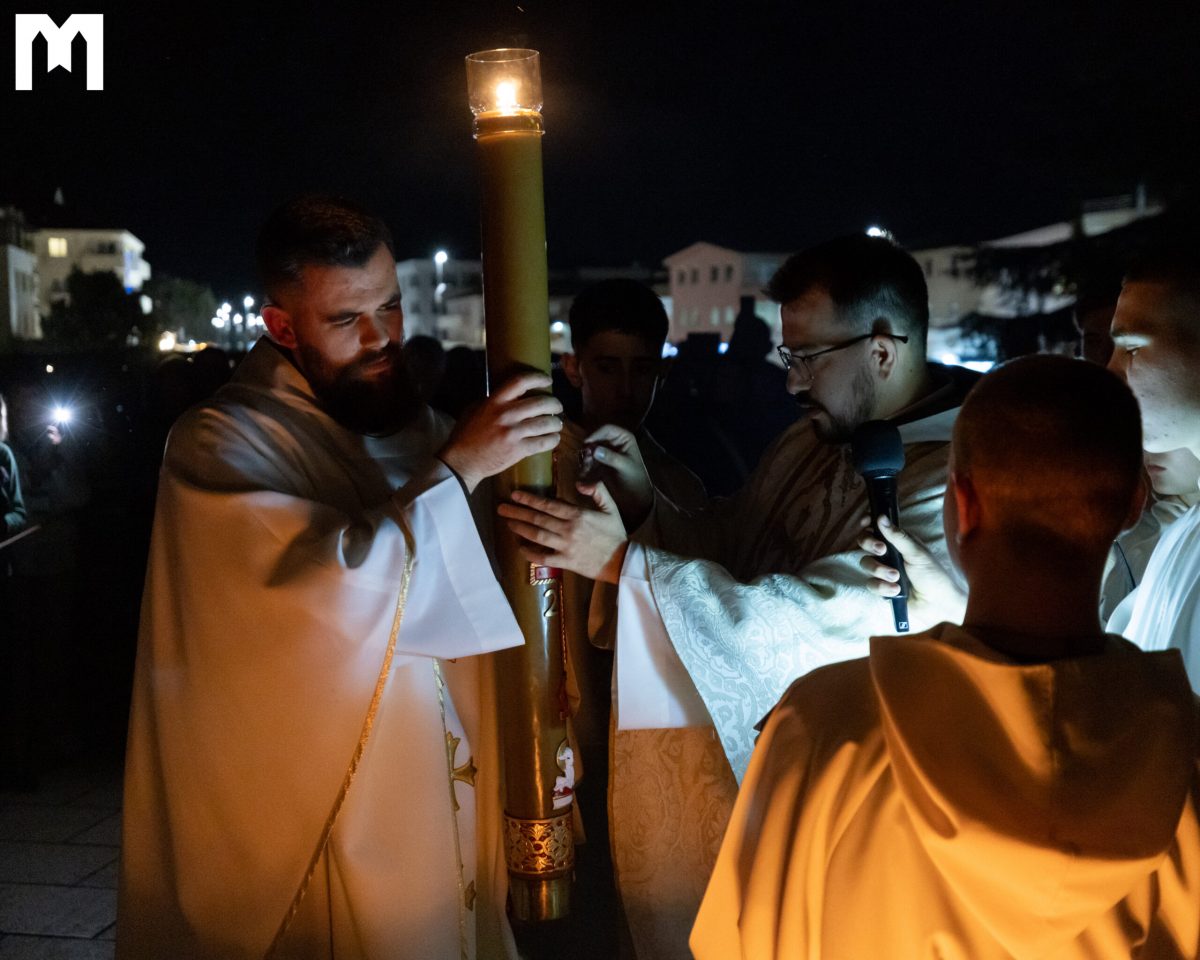 光的禮儀之後是聖道禮儀,接著是聖洗禮儀,最後是第四部分聖體禮儀,這就隆重地結束了我們從聖週四以主的晚餐彌撒開始的逾越三日慶典。復活節守夜禮由默主哥耶堂區的副本堂Ivan Hrkać神父主持。
