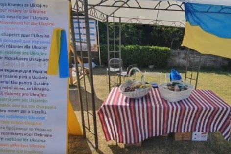 近年来,我们有一个「为和平的玫瑰念珠」行动,你可以奉献自己的玫瑰念珠,把它放在我左边草地上的篮子里。这些玫瑰念珠被送往乌克兰以及其他受战争影响的国家,那些地方的人们看到的出路很少、解决办法不多,但他们知道,有天主,他们就能成就一切。